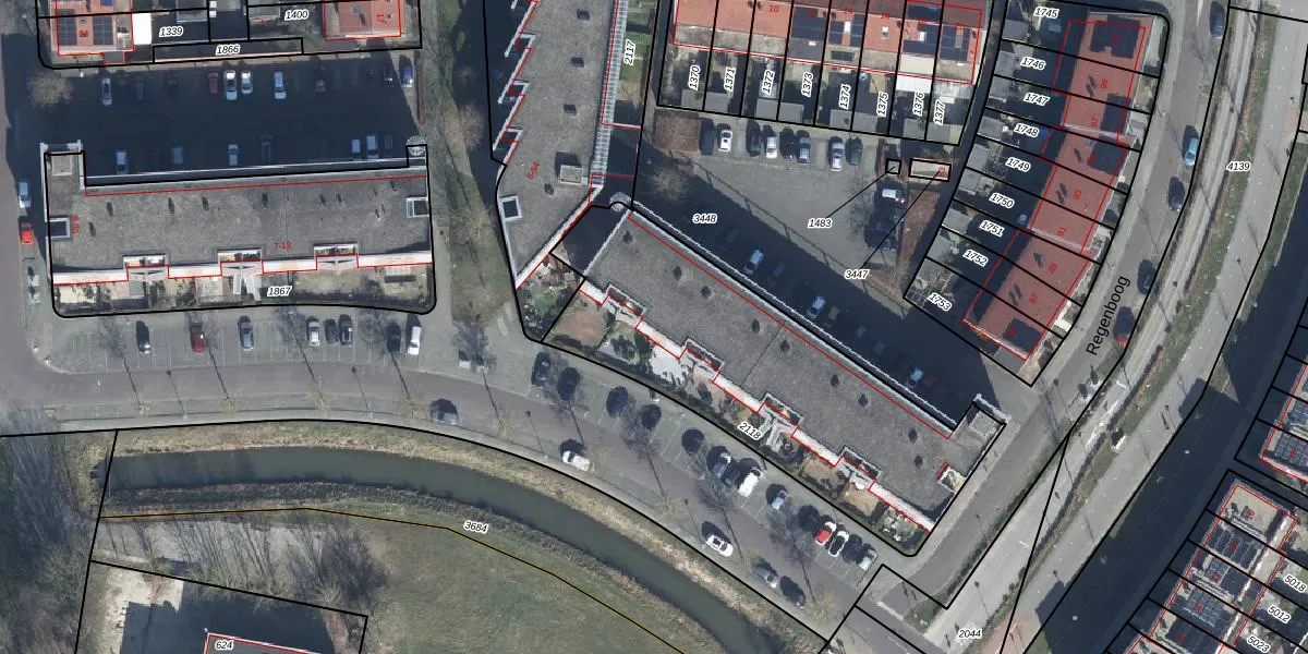 Het perceel waarop Regenboog 23 staat heeft een oppervlakte van 1464 m². Dit is een zeer groot perceel. De perceeloppervlakte wordt geregistreerd door het Kadaster. Gedetailleerde informatie over de maten van dit perceel kunt u vinden in het rapport Kadastrale kaart met maatvoering van Regenboog 23.