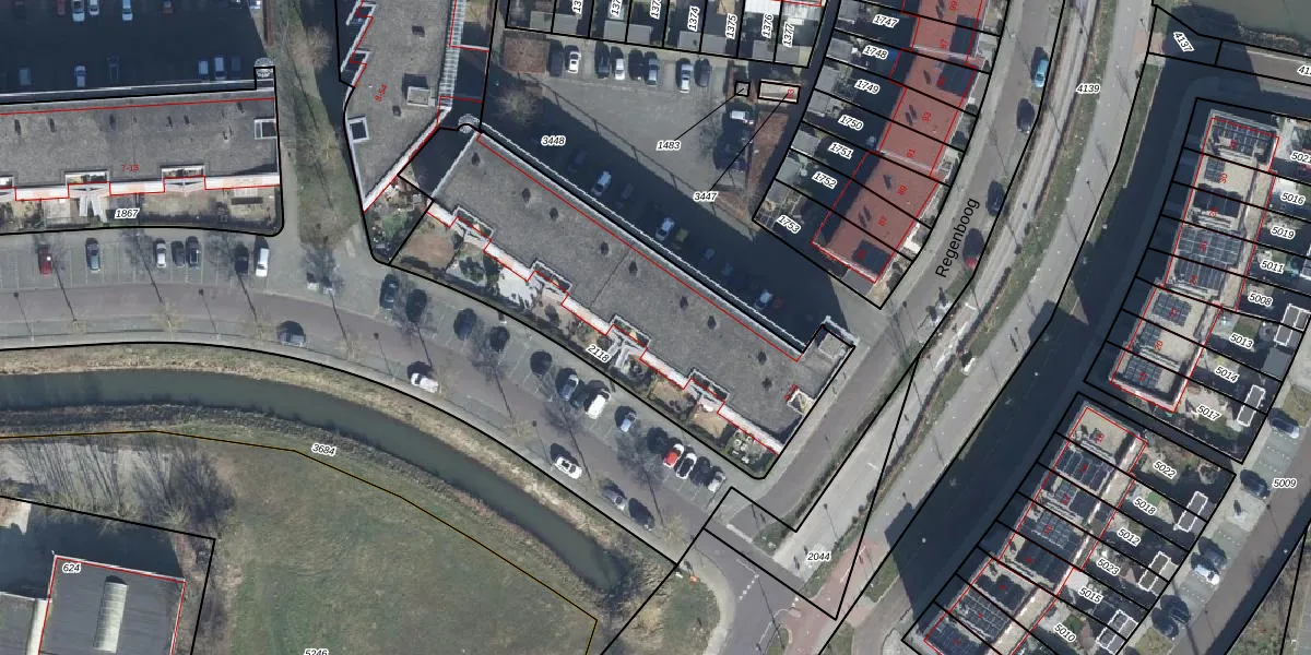 Het perceel waarop Regenboog 33 staat heeft een oppervlakte van 1464 m². Dit is een zeer groot perceel. De perceeloppervlakte wordt geregistreerd door het Kadaster. Gedetailleerde informatie over de maten van dit perceel kunt u vinden in het rapport Kadastrale kaart met maatvoering van Regenboog 33.