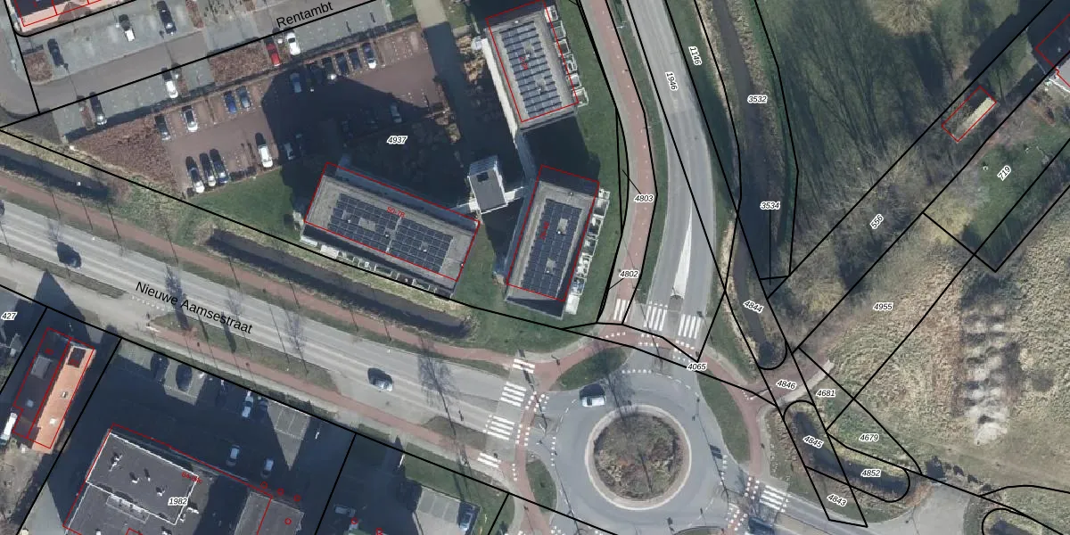 Het perceel waarop Rentambt 36 staat heeft een oppervlakte van 4588 m². Dit is een zeer groot perceel. De perceeloppervlakte wordt geregistreerd door het Kadaster. Gedetailleerde informatie over de maten van dit perceel kunt u vinden in het rapport Kadastrale kaart met maatvoering van Rentambt 36.