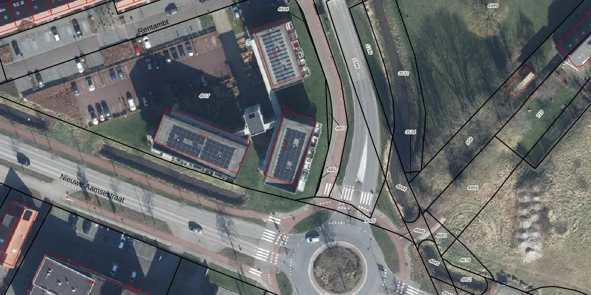 Het perceel waarop Rentambt 40 staat heeft een oppervlakte van 4588 m². Dit is een zeer groot perceel. De perceeloppervlakte wordt geregistreerd door het Kadaster. Gedetailleerde informatie over de maten van dit perceel kunt u vinden in het rapport Kadastrale kaart met maatvoering van Rentambt 40.