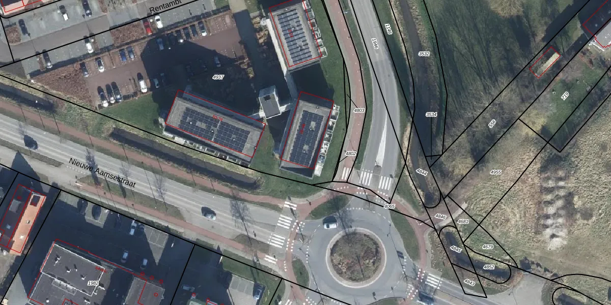 Het perceel waarop Rentambt 42 staat heeft een oppervlakte van 4588 m². Dit is een zeer groot perceel. De perceeloppervlakte wordt geregistreerd door het Kadaster. Gedetailleerde informatie over de maten van dit perceel kunt u vinden in het rapport Kadastrale kaart met maatvoering van Rentambt 42.
