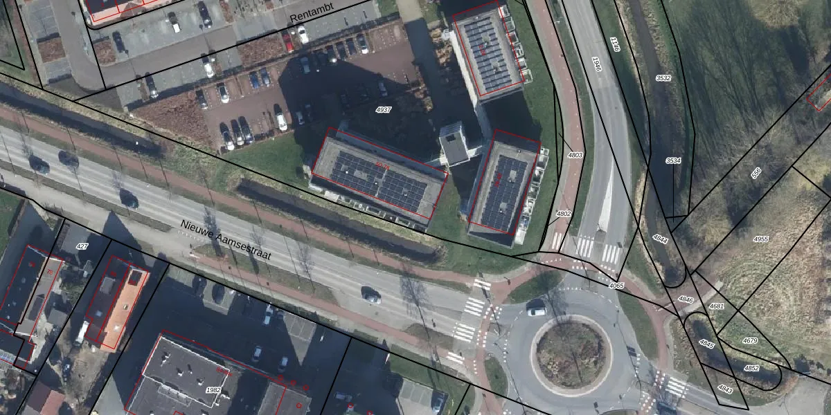 Het perceel waarop Rentambt 72 staat heeft een oppervlakte van 4588 m². Dit is een zeer groot perceel. De perceeloppervlakte wordt geregistreerd door het Kadaster. Gedetailleerde informatie over de maten van dit perceel kunt u vinden in het rapport Kadastrale kaart met maatvoering van Rentambt 72.