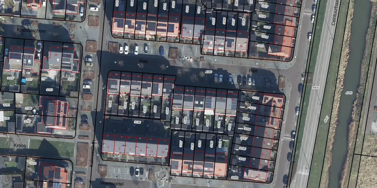 Het perceel waarop Riet 18 staat heeft een oppervlakte van 137 m². Dit is een middelgroot perceel. De perceeloppervlakte wordt geregistreerd door het Kadaster. Gedetailleerde informatie over de maten van dit perceel kunt u vinden in het rapport Kadastrale kaart met maatvoering van Riet 18.