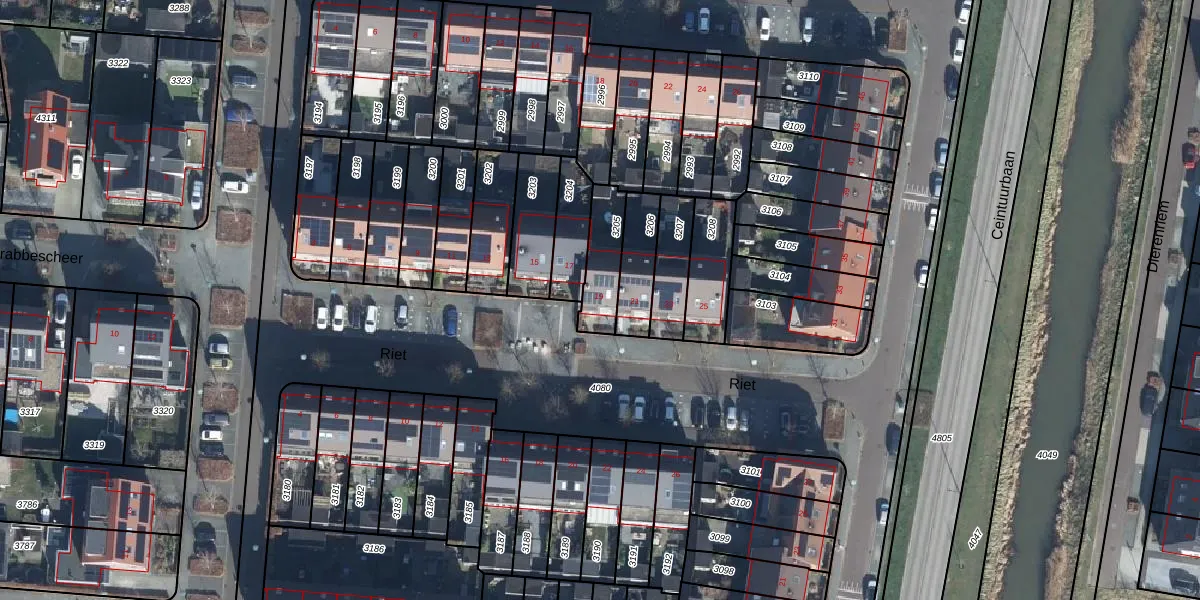 Gebruik de zoekbalk of klik op een perceel voor informatie over de adressen binnen dit perceel.