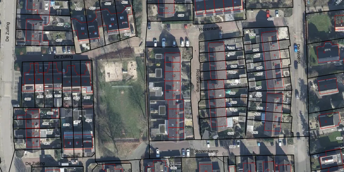Het perceel waarop Rozenkamp 18 staat heeft een oppervlakte van 1410 m². Dit is een zeer groot perceel. De perceeloppervlakte wordt geregistreerd door het Kadaster. Gedetailleerde informatie over de maten van dit perceel kunt u vinden in het rapport Kadastrale kaart met maatvoering van Rozenkamp 18.
