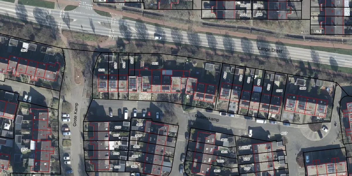 Het perceel waarop Ruiterskamp 19 staat heeft een oppervlakte van 1352 m². Dit is een zeer groot perceel. De perceeloppervlakte wordt geregistreerd door het Kadaster. Gedetailleerde informatie over de maten van dit perceel kunt u vinden in het rapport Kadastrale kaart met maatvoering van Ruiterskamp 19.