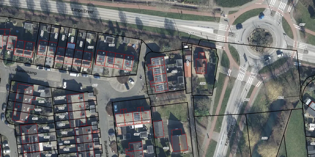 Het perceel waarop Ruiterskamp 55 staat heeft een oppervlakte van 640 m². Dit is een groot perceel. De perceeloppervlakte wordt geregistreerd door het Kadaster. Gedetailleerde informatie over de maten van dit perceel kunt u vinden in het rapport Kadastrale kaart met maatvoering van Ruiterskamp 55.