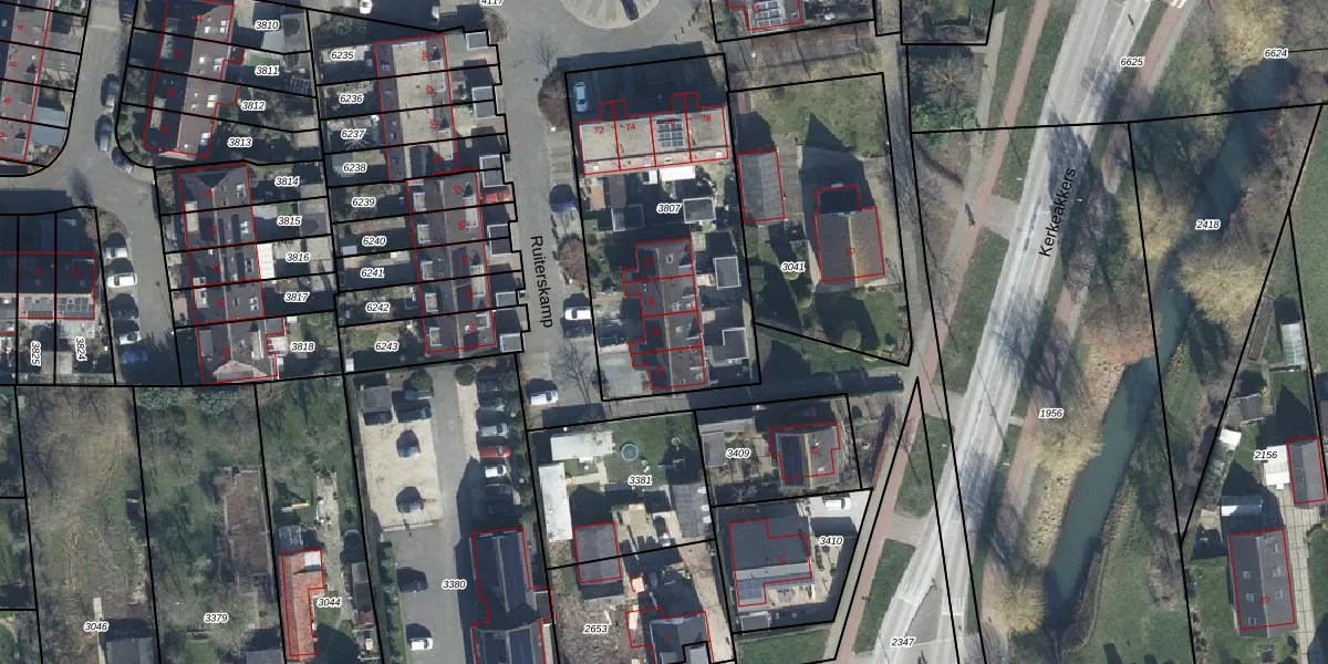 Het perceel waarop Ruiterskamp 66 staat heeft een oppervlakte van 1196 m². Dit is een zeer groot perceel. De perceeloppervlakte wordt geregistreerd door het Kadaster. Gedetailleerde informatie over de maten van dit perceel kunt u vinden in het rapport Kadastrale kaart met maatvoering van Ruiterskamp 66.