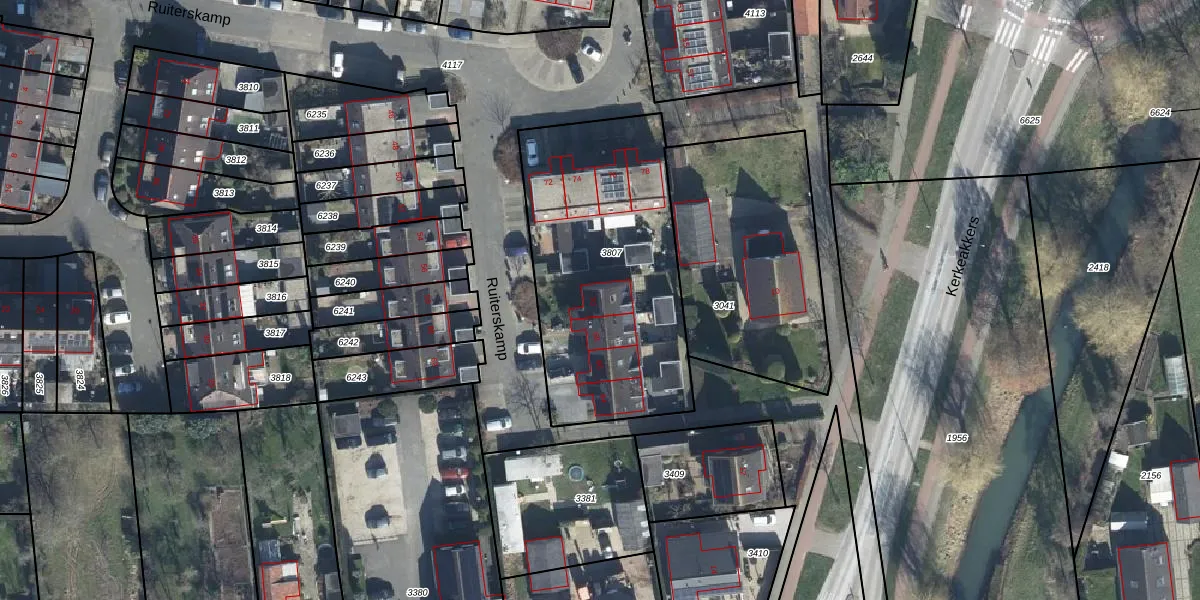 Het perceel waarop Ruiterskamp 70 staat heeft een oppervlakte van 1196 m². Dit is een zeer groot perceel. De perceeloppervlakte wordt geregistreerd door het Kadaster. Gedetailleerde informatie over de maten van dit perceel kunt u vinden in het rapport Kadastrale kaart met maatvoering van Ruiterskamp 70.