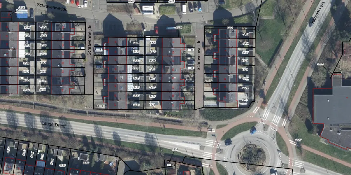 Gebruik de zoekbalk of klik op een perceel voor informatie over de adressen binnen dit perceel.