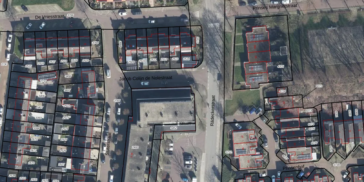 Het perceel waarop Sluterstraat 18 staat heeft een oppervlakte van 1322 m². Dit is een zeer groot perceel. De perceeloppervlakte wordt geregistreerd door het Kadaster. Gedetailleerde informatie over de maten van dit perceel kunt u vinden in het rapport Kadastrale kaart met maatvoering van Sluterstraat 18.