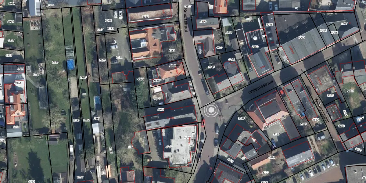 Gebruik de zoekbalk of klik op een perceel voor informatie over de adressen binnen dit perceel.