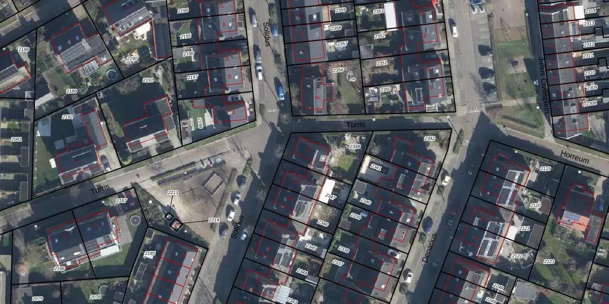 Het perceel waarop Solidus 42 staat heeft een oppervlakte van 353 m². Dit is een groot perceel. De perceeloppervlakte wordt geregistreerd door het Kadaster. Gedetailleerde informatie over de maten van dit perceel kunt u vinden in het rapport Kadastrale kaart met maatvoering van Solidus 42.