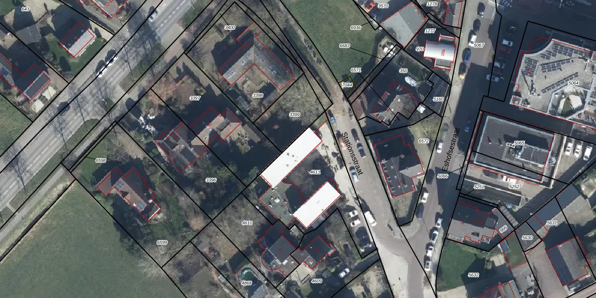 Het perceel waarop Stationsstraat 6 staat heeft een oppervlakte van 970 m². Dit is een groot perceel. De perceeloppervlakte wordt geregistreerd door het Kadaster. Gedetailleerde informatie over de maten van dit perceel kunt u vinden in het rapport Kadastrale kaart met maatvoering van Stationsstraat 6.