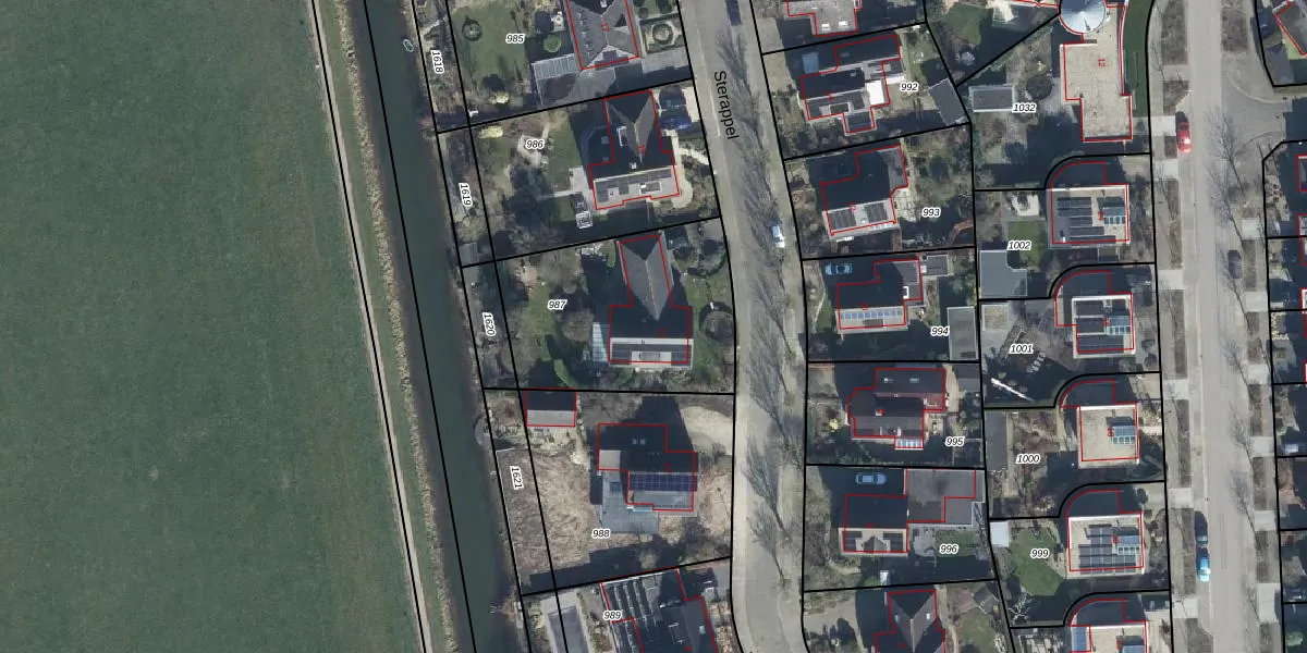 Het perceel waarop Sterappel 13 staat heeft een oppervlakte van 818 m². Dit is een groot perceel. De perceeloppervlakte wordt geregistreerd door het Kadaster. Gedetailleerde informatie over de maten van dit perceel kunt u vinden in het rapport Kadastrale kaart met maatvoering van Sterappel 13.