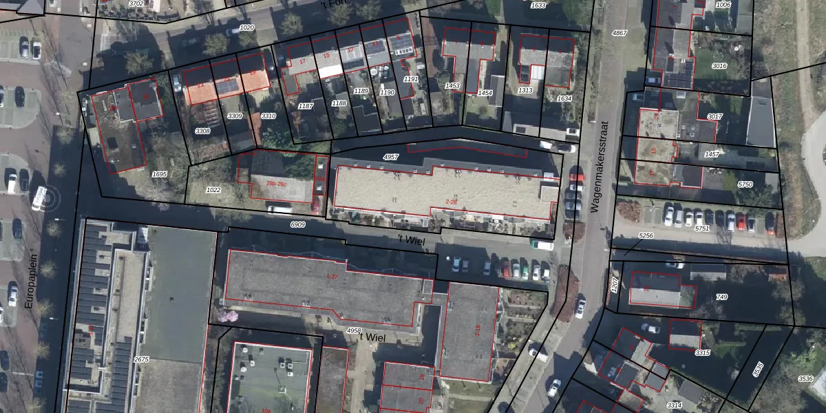 't Wiel 10 is gelegen op kadastraal perceel ELS00K4957. Deze kadastrale aanduiding is uniek en wordt gebruikt door het Kadaster om eigendomsrechten en andere zakelijke rechten vast te leggen. Het perceel maakt onderdeel uit van de kadastrale gemeente Elst.