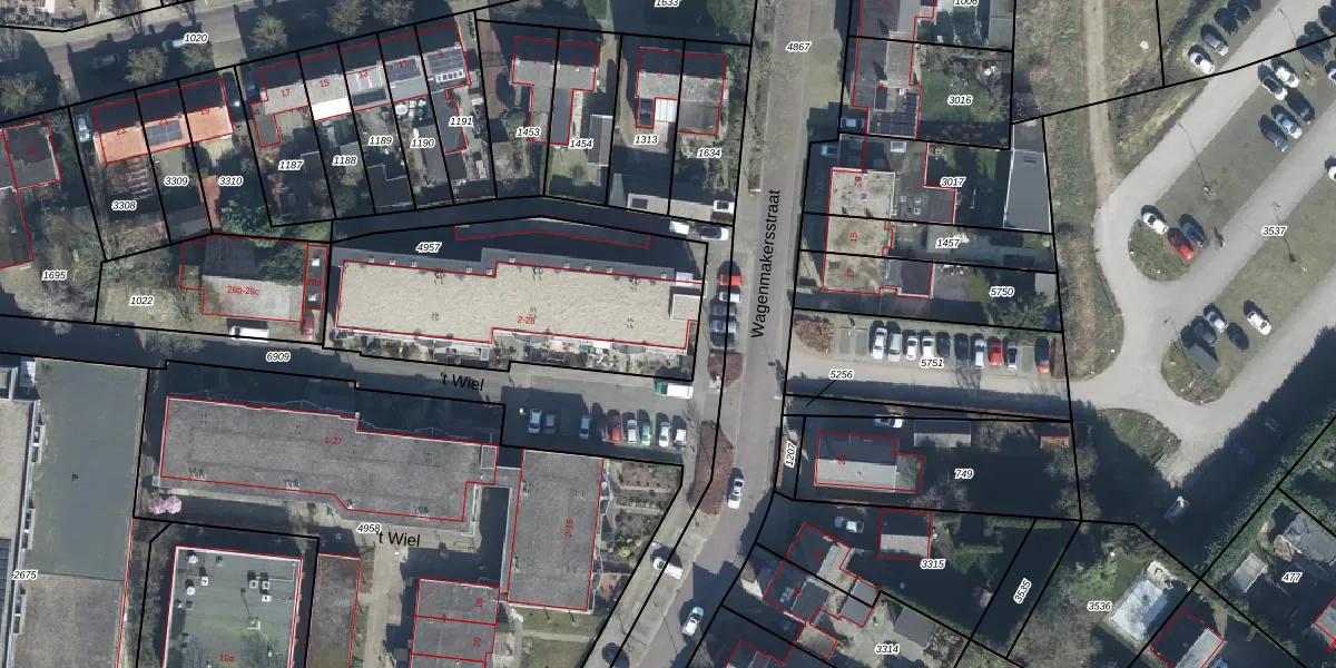 't Wiel 2 is gelegen op kadastraal perceel ELS00K4957. Deze kadastrale aanduiding is uniek en wordt gebruikt door het Kadaster om eigendomsrechten en andere zakelijke rechten vast te leggen. Het perceel maakt onderdeel uit van de kadastrale gemeente Elst.