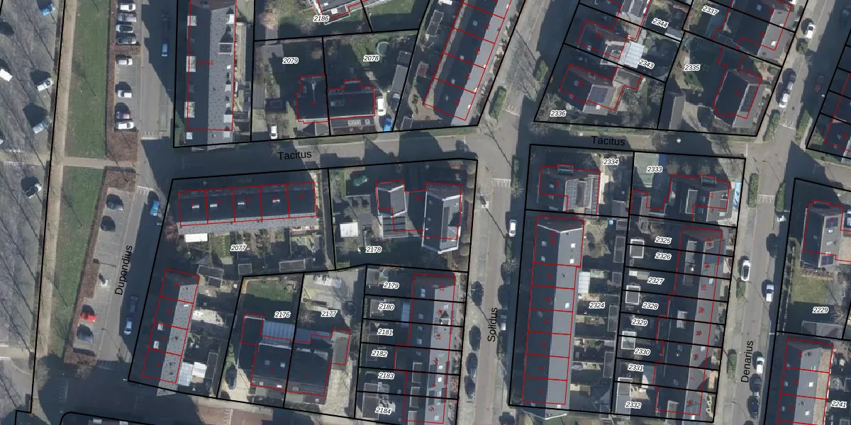 Het perceel waarop Tacitus 16 staat heeft een oppervlakte van 823 m². Dit is een groot perceel. De perceeloppervlakte wordt geregistreerd door het Kadaster. Gedetailleerde informatie over de maten van dit perceel kunt u vinden in het rapport Kadastrale kaart met maatvoering van Tacitus 16.