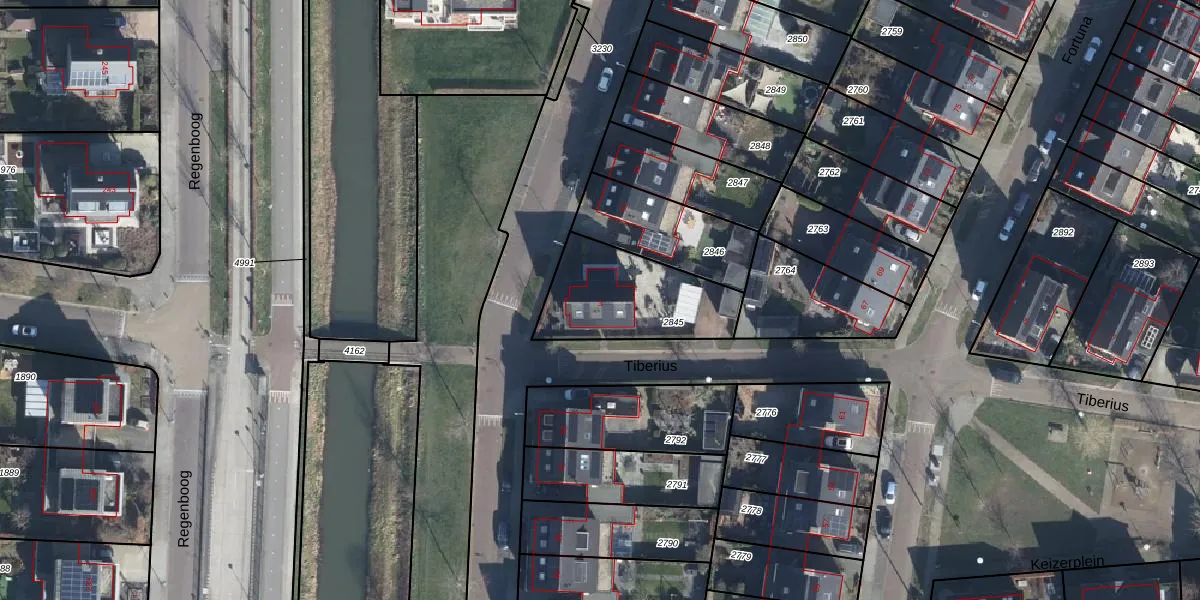 Het perceel waarop Tiberius 3 staat heeft een oppervlakte van 424 m². Dit is een groot perceel. De perceeloppervlakte wordt geregistreerd door het Kadaster. Gedetailleerde informatie over de maten van dit perceel kunt u vinden in het rapport Kadastrale kaart met maatvoering van Tiberius 3.