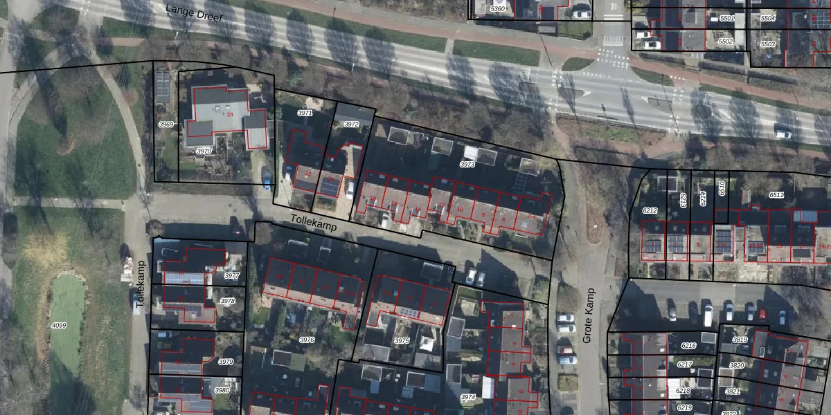 Het perceel waarop Tollekamp 14 staat heeft een oppervlakte van 1208 m². Dit is een zeer groot perceel. De perceeloppervlakte wordt geregistreerd door het Kadaster. Gedetailleerde informatie over de maten van dit perceel kunt u vinden in het rapport Kadastrale kaart met maatvoering van Tollekamp 14.
