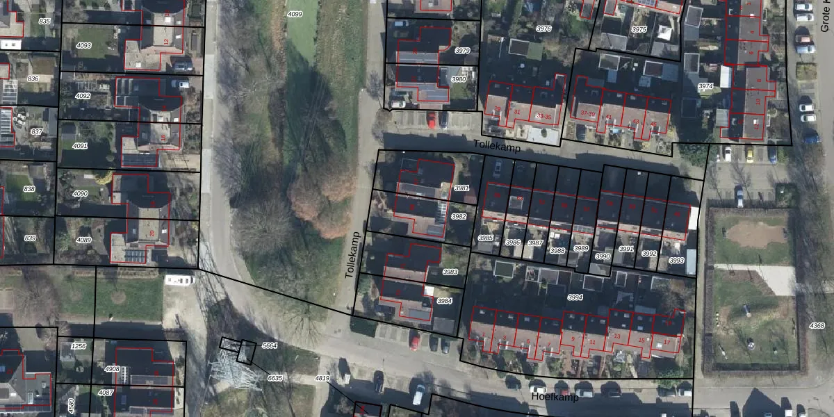 Het perceel waarop Tollekamp 69 staat heeft een oppervlakte van 257 m². Dit is een middelgroot perceel. De perceeloppervlakte wordt geregistreerd door het Kadaster. Gedetailleerde informatie over de maten van dit perceel kunt u vinden in het rapport Kadastrale kaart met maatvoering van Tollekamp 69.