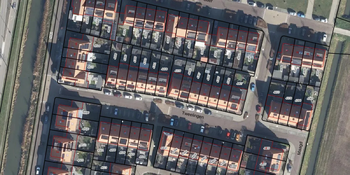 Het perceel waarop Tweelingen 13 staat heeft een oppervlakte van 177 m². Dit is een middelgroot perceel. De perceeloppervlakte wordt geregistreerd door het Kadaster. Gedetailleerde informatie over de maten van dit perceel kunt u vinden in het rapport Kadastrale kaart met maatvoering van Tweelingen 13.