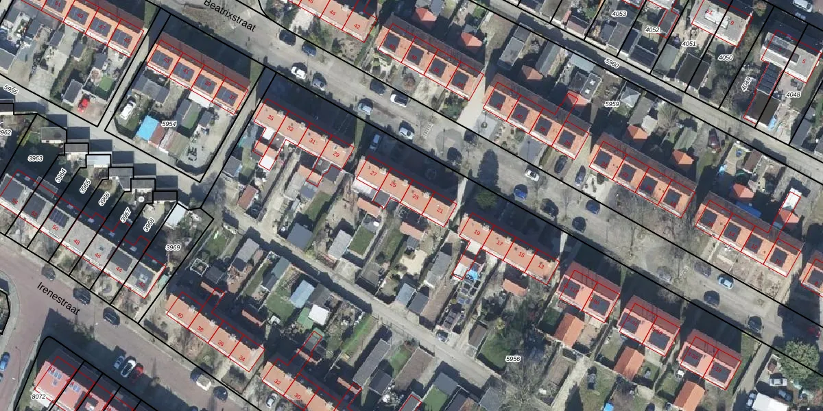 Beatrixstraat 23 is gelegen op kadastraal perceel RNN01H5956. Deze kadastrale aanduiding is uniek en wordt gebruikt door het Kadaster om eigendomsrechten en andere zakelijke rechten vast te leggen. Het perceel maakt onderdeel uit van de kadastrale gemeente Rhenen.
