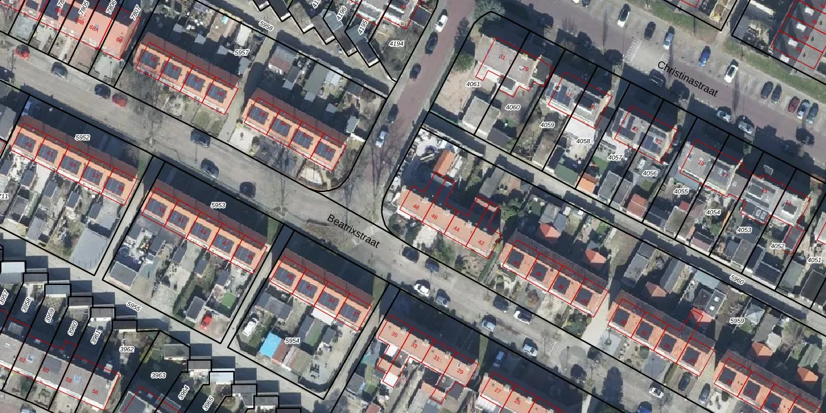 Het perceel waarop Beatrixstraat 48 staat heeft een oppervlakte van 5140 m². Dit is een zeer groot perceel. De perceeloppervlakte wordt geregistreerd door het Kadaster. Gedetailleerde informatie over de maten van dit perceel kunt u vinden in het rapport Kadastrale kaart met maatvoering van Beatrixstraat 48.