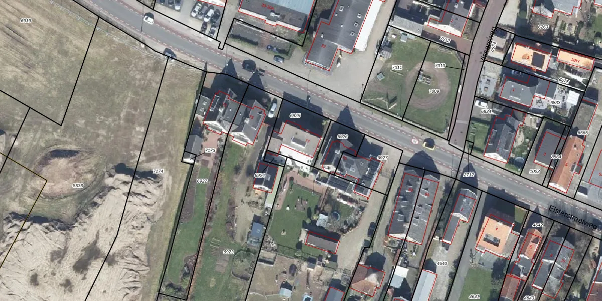 Elsterstraatweg 77 is gelegen op kadastraal perceel RNN01H6925. Deze kadastrale aanduiding is uniek en wordt gebruikt door het Kadaster om eigendomsrechten en andere zakelijke rechten vast te leggen. Het perceel maakt onderdeel uit van de kadastrale gemeente Rhenen.