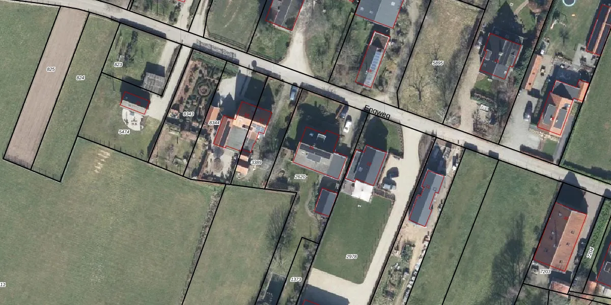 Het perceel waarop Engweg 15 staat heeft een oppervlakte van 1205 m². Dit is een zeer groot perceel. De perceeloppervlakte wordt geregistreerd door het Kadaster. Gedetailleerde informatie over de maten van dit perceel kunt u vinden in het rapport Kadastrale kaart met maatvoering van Engweg 15.