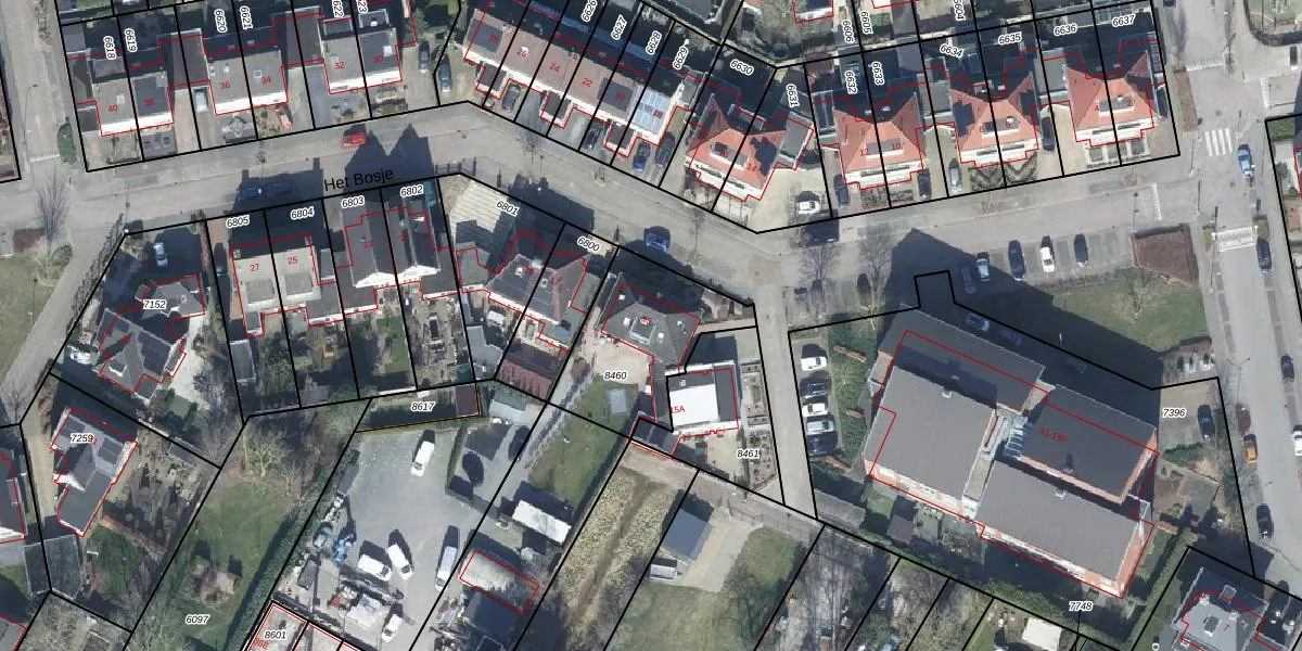 Het perceel waarop Het Bosje 15 staat heeft een oppervlakte van 464 m². Dit is een groot perceel. De perceeloppervlakte wordt geregistreerd door het Kadaster. Gedetailleerde informatie over de maten van dit perceel kunt u vinden in het rapport Kadastrale kaart met maatvoering van Het Bosje 15.
