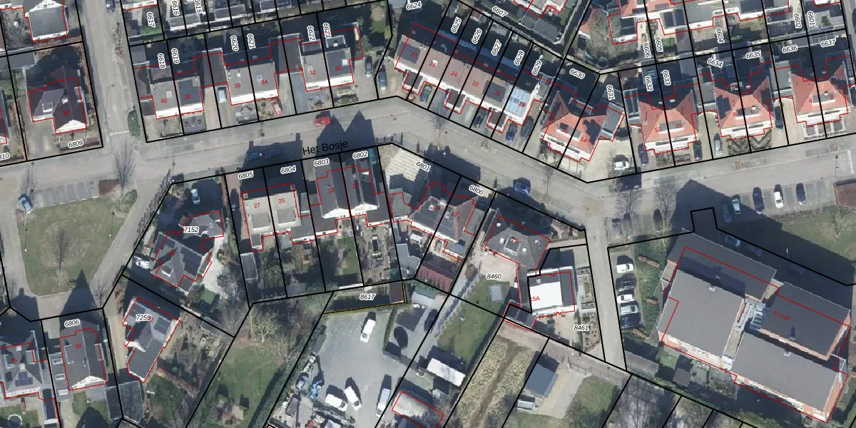 Het perceel waarop Het Bosje 19 staat heeft een oppervlakte van 340 m². Dit is een groot perceel. De perceeloppervlakte wordt geregistreerd door het Kadaster. Gedetailleerde informatie over de maten van dit perceel kunt u vinden in het rapport Kadastrale kaart met maatvoering van Het Bosje 19.