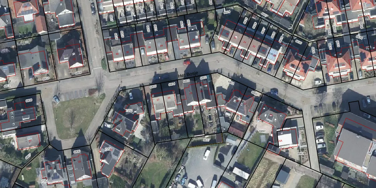 Het Bosje 23 is gelegen op kadastraal perceel RNN01H6803. Deze kadastrale aanduiding is uniek en wordt gebruikt door het Kadaster om eigendomsrechten en andere zakelijke rechten vast te leggen. Het perceel maakt onderdeel uit van de kadastrale gemeente Rhenen.