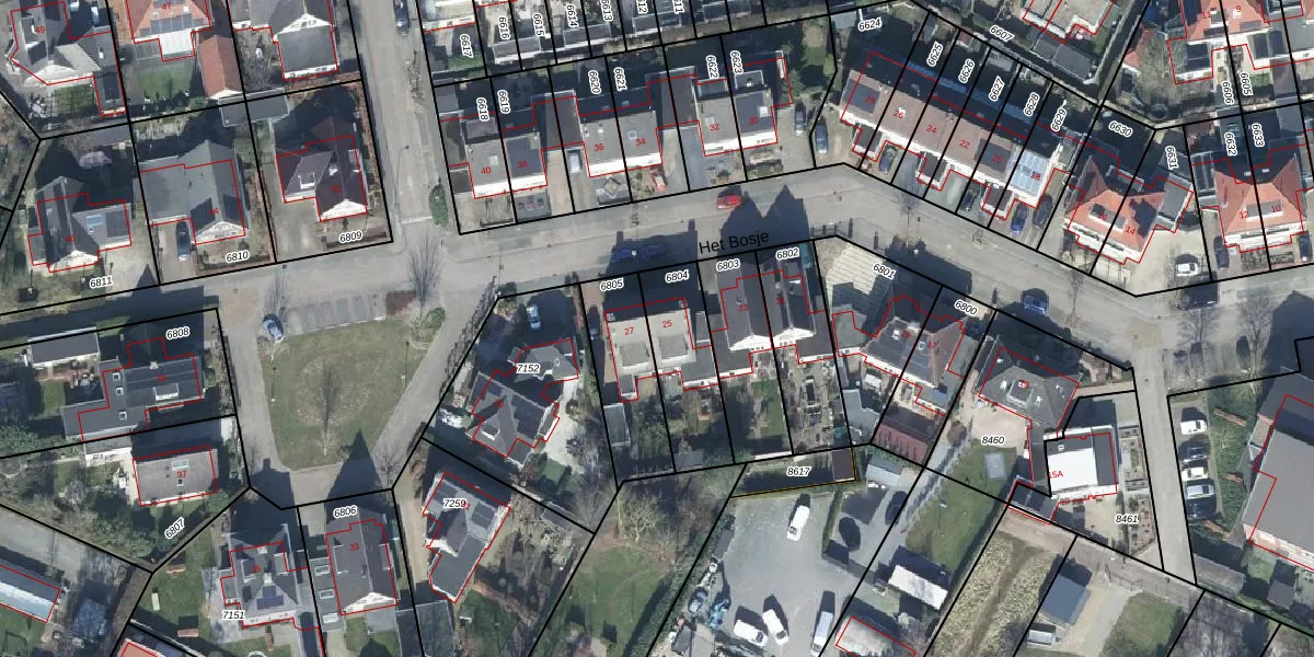 Het Bosje 25 is gelegen op kadastraal perceel RNN01H6804. Deze kadastrale aanduiding is uniek en wordt gebruikt door het Kadaster om eigendomsrechten en andere zakelijke rechten vast te leggen. Het perceel maakt onderdeel uit van de kadastrale gemeente Rhenen.