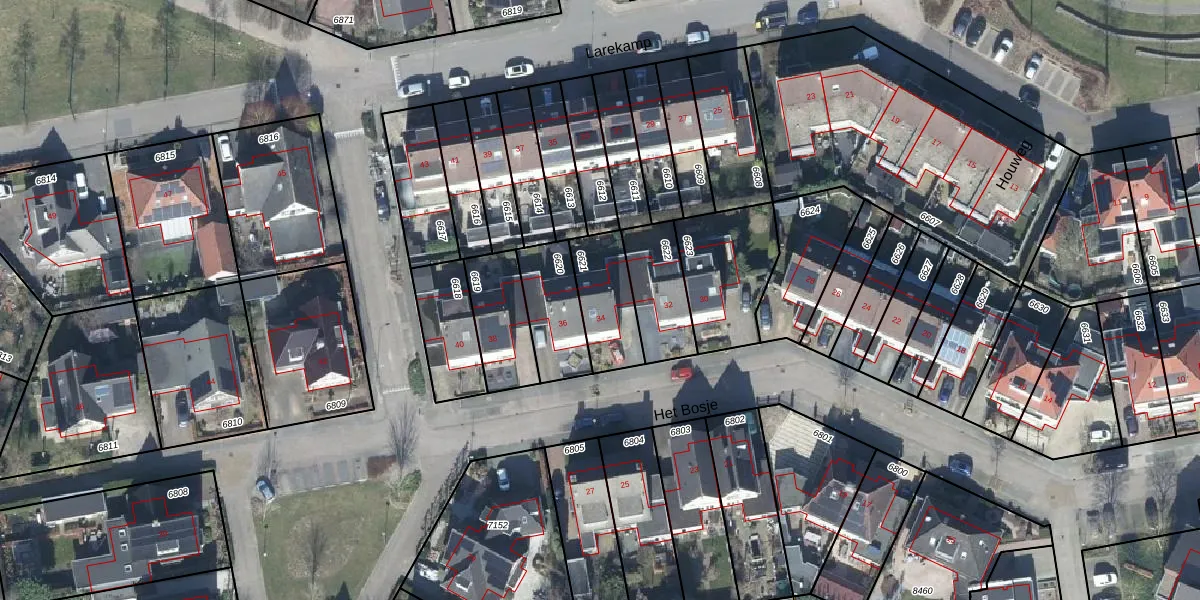 Gebruik de zoekbalk of klik op een perceel voor informatie over de adressen binnen dit perceel.