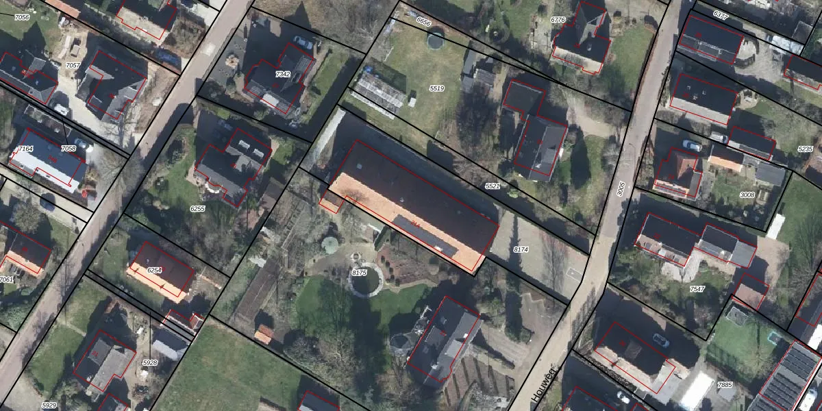 Het perceel waarop Houweg 21-A staat heeft een oppervlakte van 1245 m². Dit is een zeer groot perceel. De perceeloppervlakte wordt geregistreerd door het Kadaster. Gedetailleerde informatie over de maten van dit perceel kunt u vinden in het rapport Kadastrale kaart met maatvoering van Houweg 21-A.