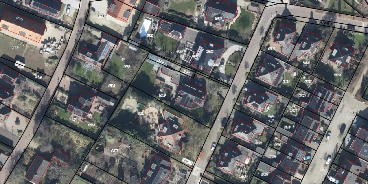 Het perceel waarop Houweg 29 staat heeft een oppervlakte van 1010 m². Dit is een zeer groot perceel. De perceeloppervlakte wordt geregistreerd door het Kadaster. Gedetailleerde informatie over de maten van dit perceel kunt u vinden in het rapport Kadastrale kaart met maatvoering van Houweg 29.