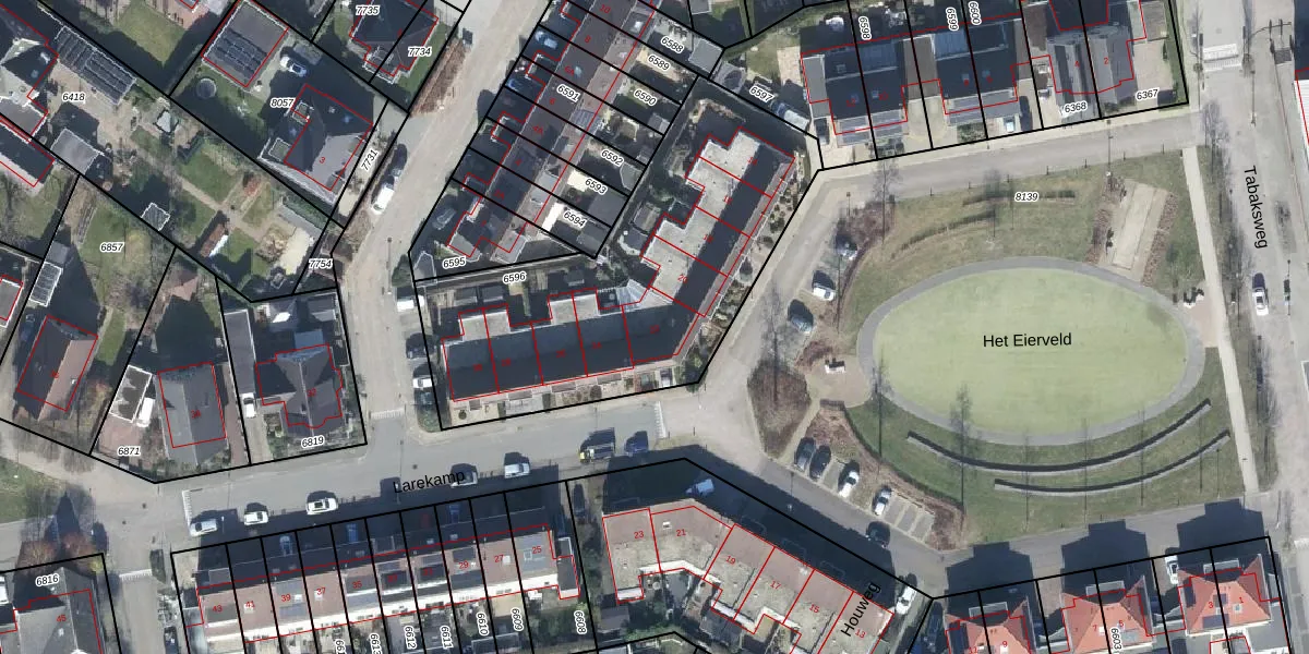 Het perceel waarop het adres ligt is RNN01-H-6596. De afkorting 'RNN01' staat voor kadastrale gemeente Rhenen. Het perceel is kleiner dan gemiddeld in Rhenen. Het perceel is 1624 m² groot, terwijl het gemiddelde ligt op 4304,2 m². Het kleinste perceel in de kadastrale gemeente is 0 m² groot. De grootste perceeloppervlakte is 1,05 km². Op het perceel zijn 9 adressen aanwezig. De huidige grenzen van het perceel zijn digitaal in de Basisregistratie Kadaster (BRK) geregistreerd op 17-06-2010.