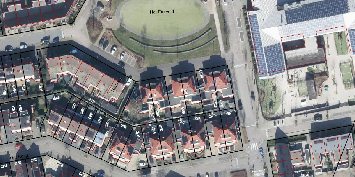 Gebruik de zoekbalk of klik op een perceel voor informatie over de adressen binnen dit perceel.