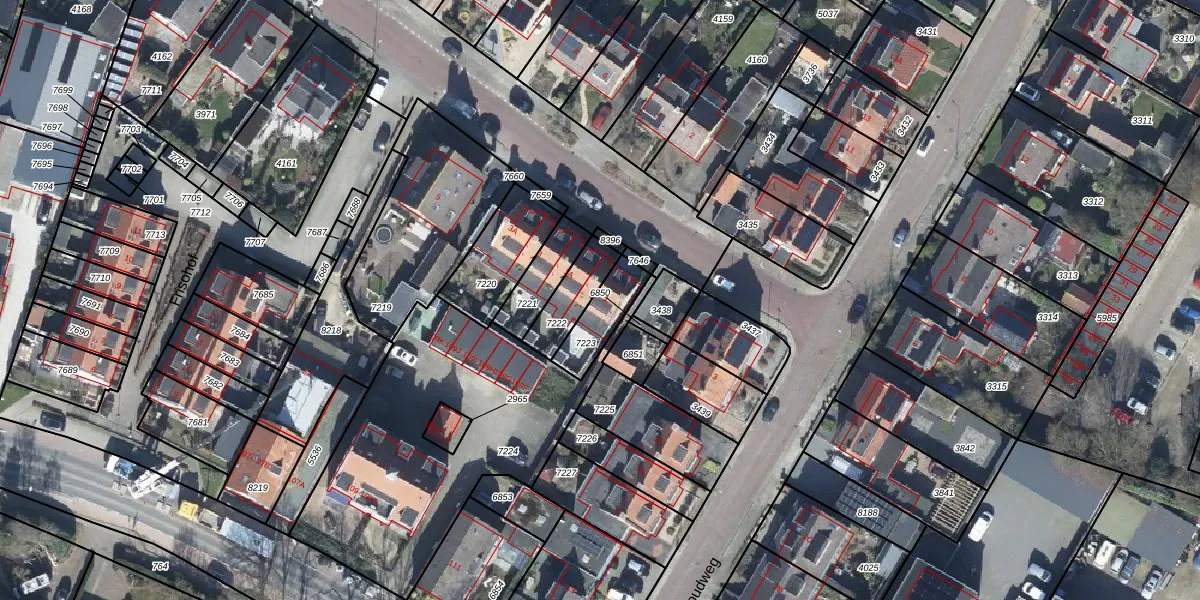 Het perceel waarop het adres ligt is RNN01-H-7223. De afkorting 'RNN01' staat voor kadastrale gemeente Rhenen. Het perceel is kleiner dan gemiddeld in Rhenen. Het perceel is 128 m² groot, terwijl het gemiddelde ligt op 4282,3 m². De grootste perceeloppervlakte in de kadastrale gemeente is 1,05 km². De kleinste oppervlakte bedraagt 0 m². Op het perceel bevinden zich geen andere adressen. De huidige grenzen van het perceel zijn digitaal in de Basisregistratie Kadaster (BRK) geregistreerd op 29-07-2008.