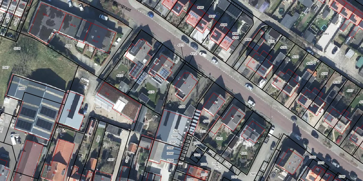 Het perceel waarop Oranjestraat 13 staat heeft een oppervlakte van 760 m². Dit is een groot perceel. De perceeloppervlakte wordt geregistreerd door het Kadaster. Gedetailleerde informatie over de maten van dit perceel kunt u vinden in het rapport Kadastrale kaart met maatvoering van Oranjestraat 13.