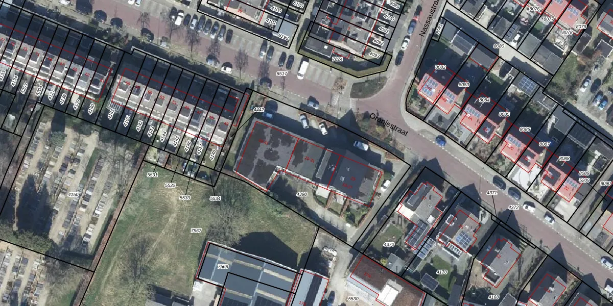 Het perceel waarop Oranjestraat 31 staat heeft een oppervlakte van 1630 m². Dit is een zeer groot perceel. De perceeloppervlakte wordt geregistreerd door het Kadaster. Gedetailleerde informatie over de maten van dit perceel kunt u vinden in het rapport Kadastrale kaart met maatvoering van Oranjestraat 31.