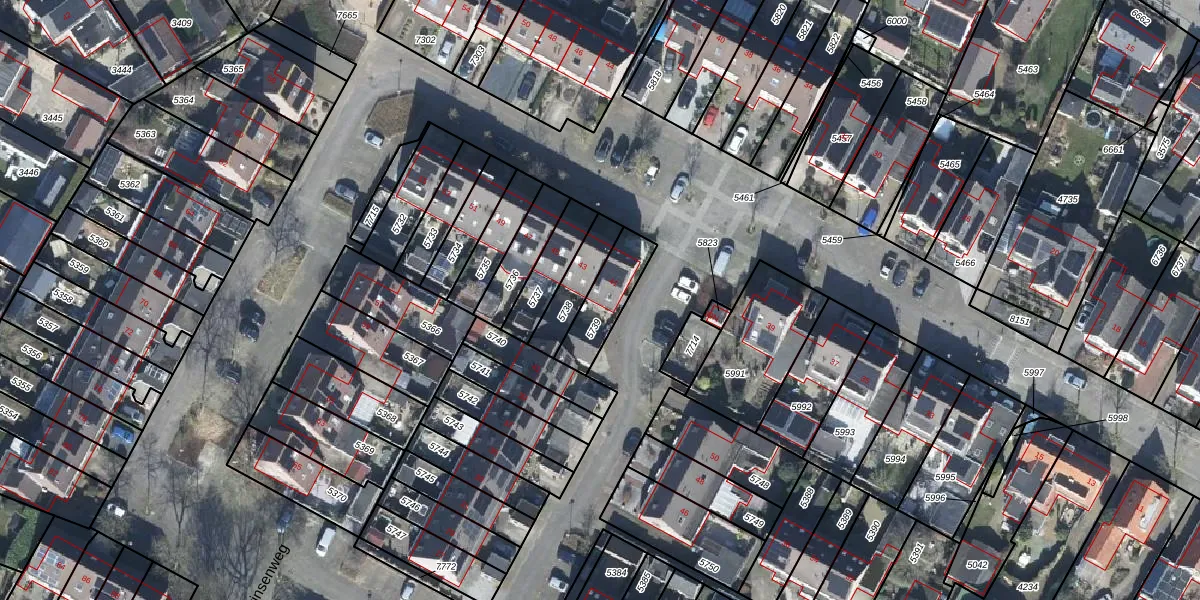 Het perceel waarop het adres ligt is RNN01-H-5739. De afkorting 'RNN01' staat voor kadastrale gemeente Rhenen. Het perceel is kleiner dan gemiddeld in Rhenen. Het perceel is 154 m² groot, terwijl het gemiddelde ligt op 4294,49 m². Het grootste perceel in de kadastrale gemeente is 1,05 km². Het kleinste perceel heeft een oppervlakte van 0 m². Dit is het enige adres dat aanwezig is op het perceel. De huidige grenzen van het perceel zijn digitaal in de Basisregistratie Kadaster (BRK) geregistreerd op 01-07-2010.