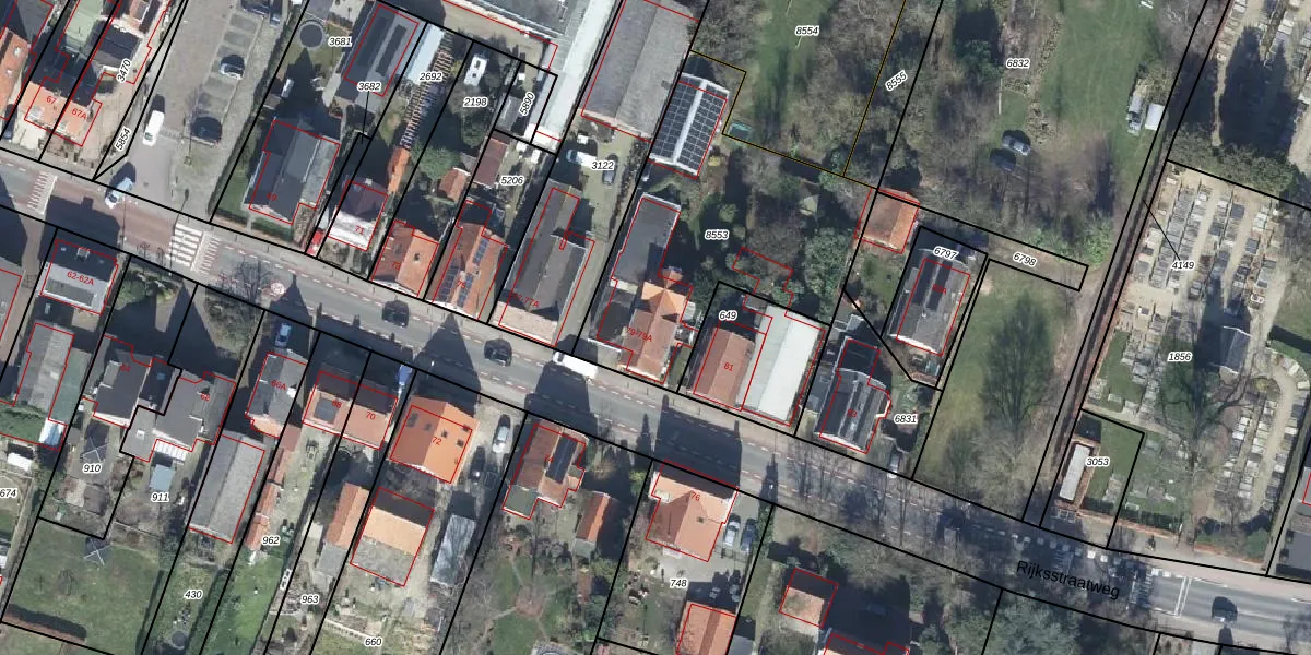 Het perceel waarop Rijksstraatweg 79 staat heeft een oppervlakte van 1168 m². Dit is een zeer groot perceel. De perceeloppervlakte wordt geregistreerd door het Kadaster. Gedetailleerde informatie over de maten van dit perceel kunt u vinden in het rapport Kadastrale kaart met maatvoering van Rijksstraatweg 79.