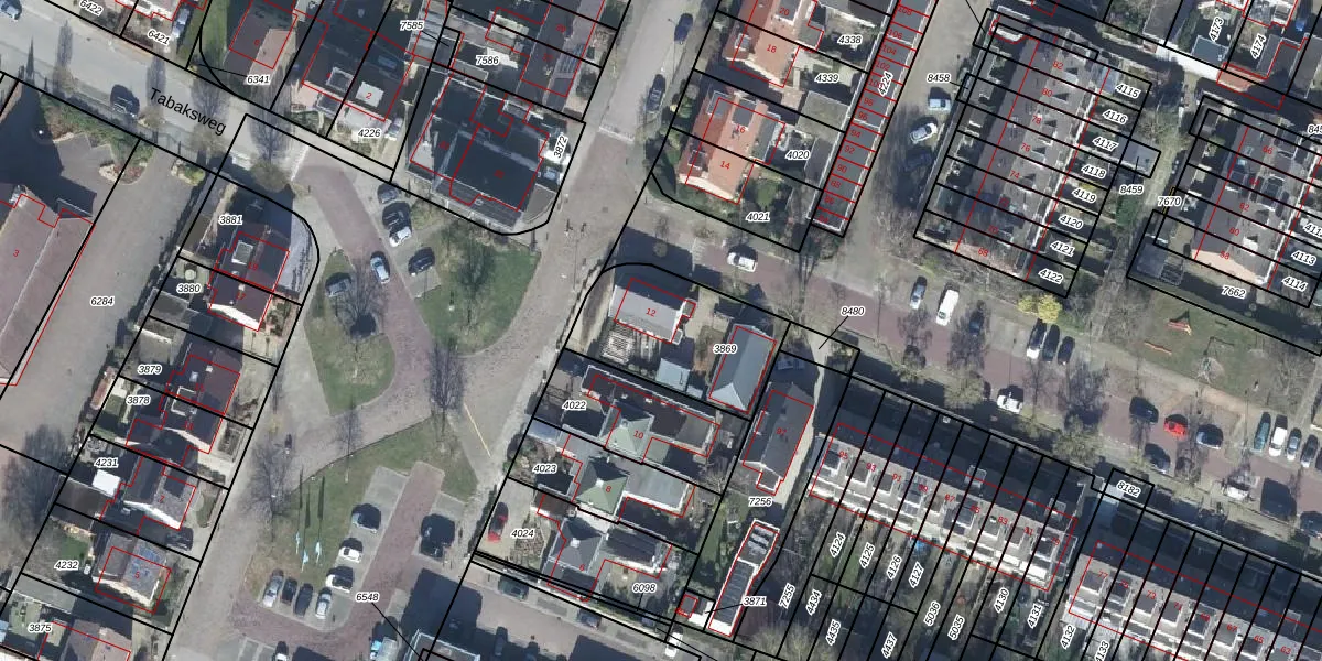 Gebruik de zoekbalk of klik op een perceel voor informatie over de adressen binnen dit perceel.
