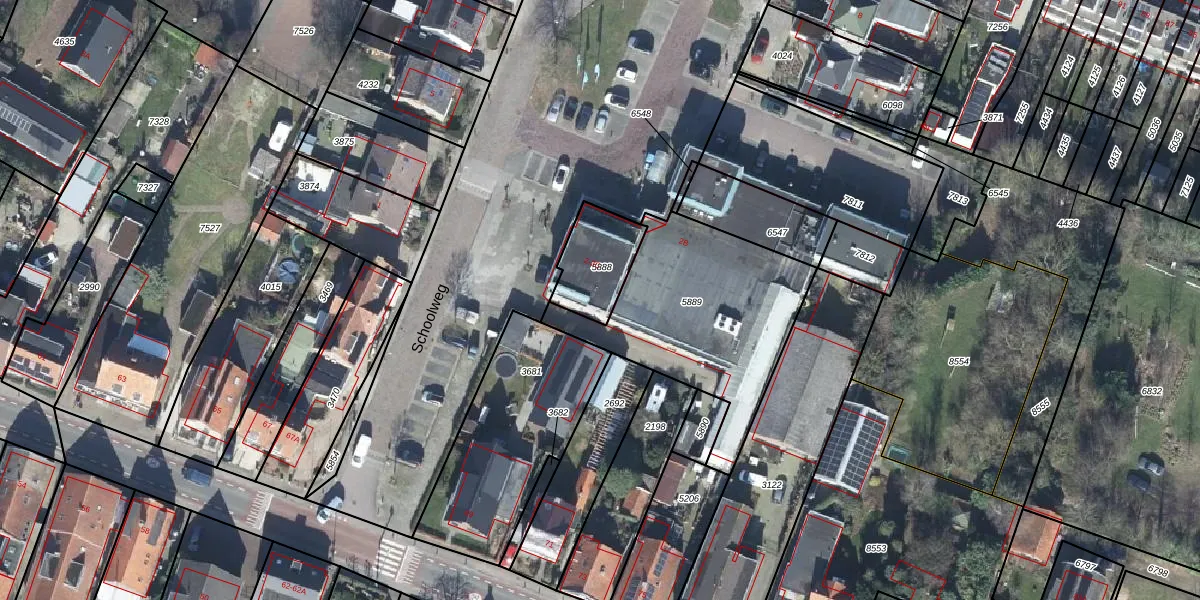 Schoolweg 2 is gelegen op kadastraal perceel RNN01H5888. Deze kadastrale aanduiding is uniek en wordt gebruikt door het Kadaster om eigendomsrechten en andere zakelijke rechten vast te leggen. Het perceel maakt onderdeel uit van de kadastrale gemeente Rhenen.