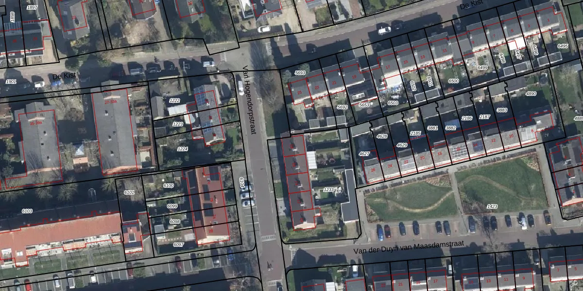 Het perceel waarop Van Hogendorpstraat 18 staat heeft een oppervlakte van 1045 m². Dit is een zeer groot perceel. De perceeloppervlakte wordt geregistreerd door het Kadaster. Gedetailleerde informatie over de maten van dit perceel kunt u vinden in het rapport Kadastrale kaart met maatvoering van Van Hogendorpstraat 18.