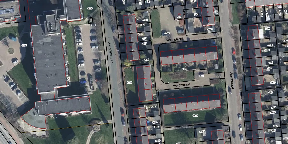 Het perceel waarop Verdistraat 27 staat heeft een oppervlakte van 620 m². Dit is een groot perceel. De perceeloppervlakte wordt geregistreerd door het Kadaster. Gedetailleerde informatie over de maten van dit perceel kunt u vinden in het rapport Kadastrale kaart met maatvoering van Verdistraat 27.
