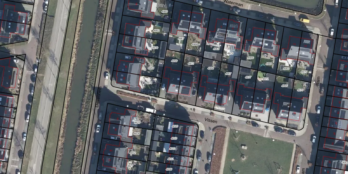 Gebruik de zoekbalk of klik op een perceel voor informatie over de adressen binnen dit perceel.