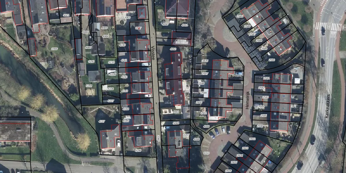 Het perceel waarop Visstee 1-a staat heeft een oppervlakte van 417 m². Dit is een groot perceel. De perceeloppervlakte wordt geregistreerd door het Kadaster. Gedetailleerde informatie over de maten van dit perceel kunt u vinden in het rapport Kadastrale kaart met maatvoering van Visstee 1-a.